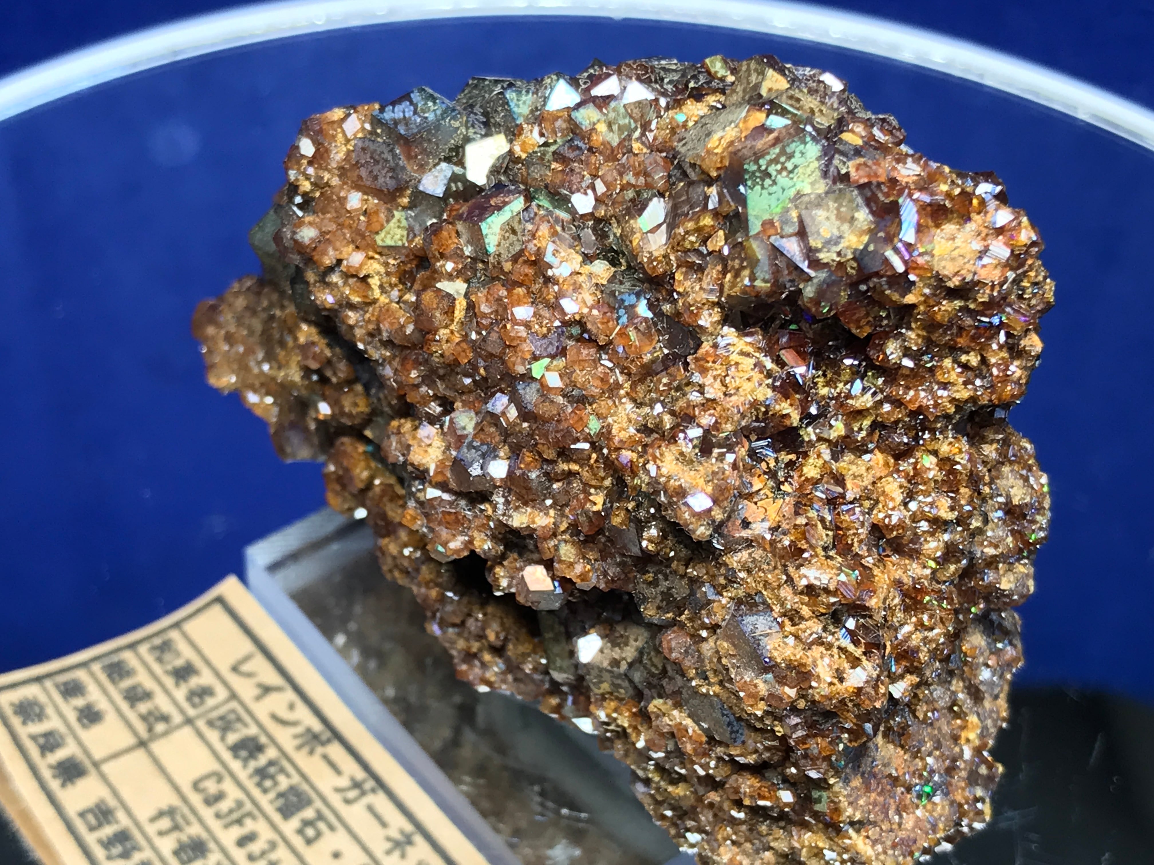奈良県天川村行者還岳産のレインボーガーネットクラスターです。