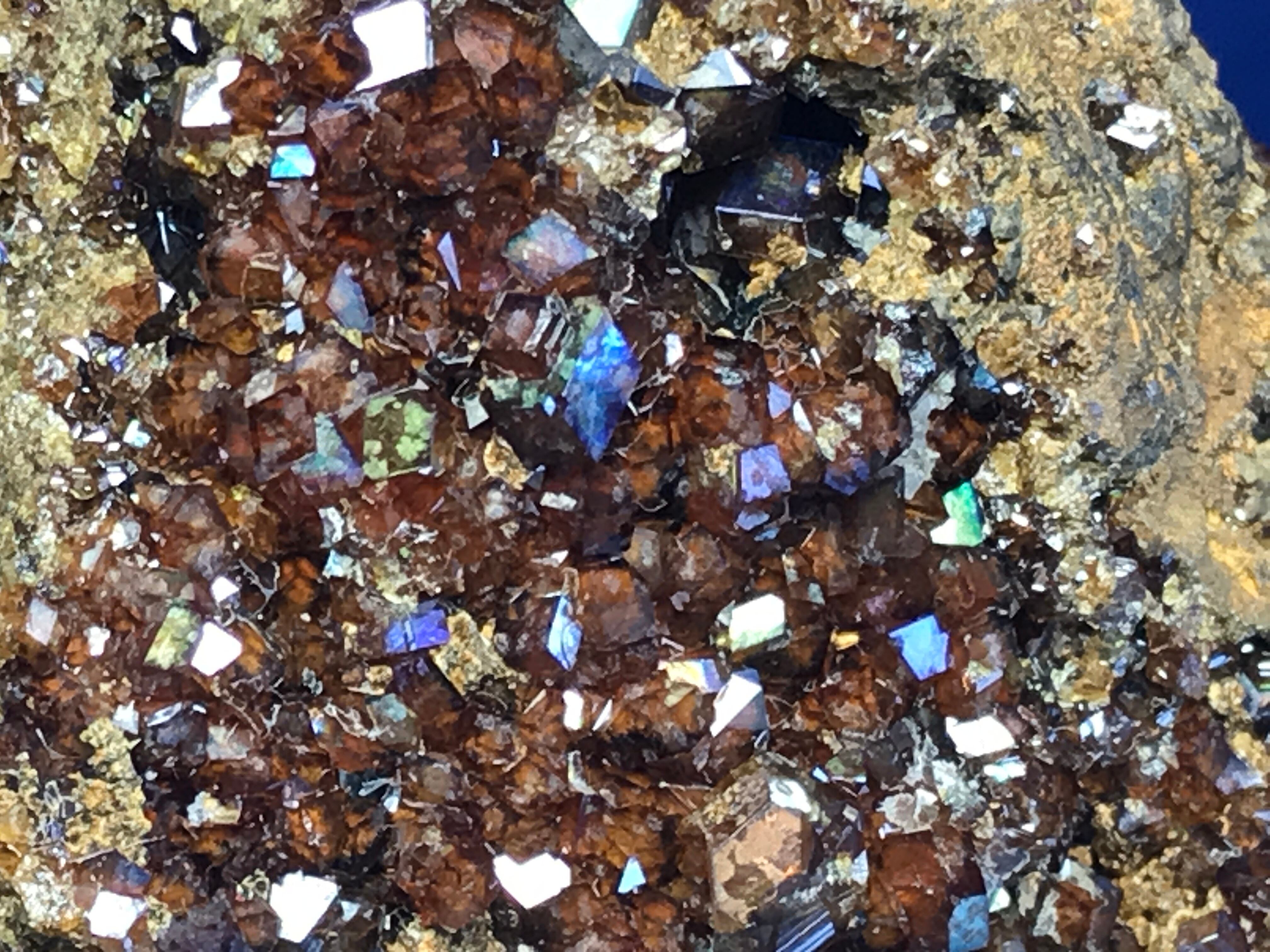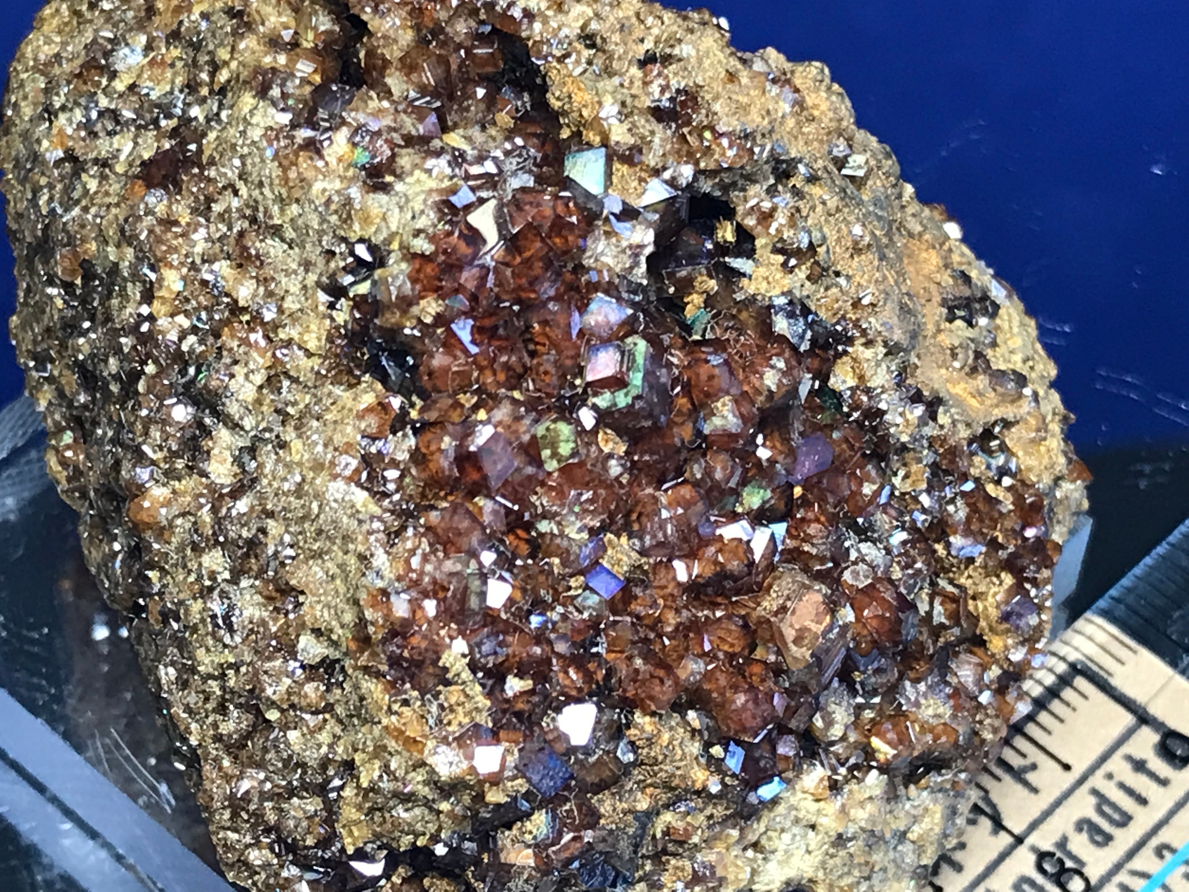 奈良県天川村行者還岳産のレインボーガーネットクラスターです。