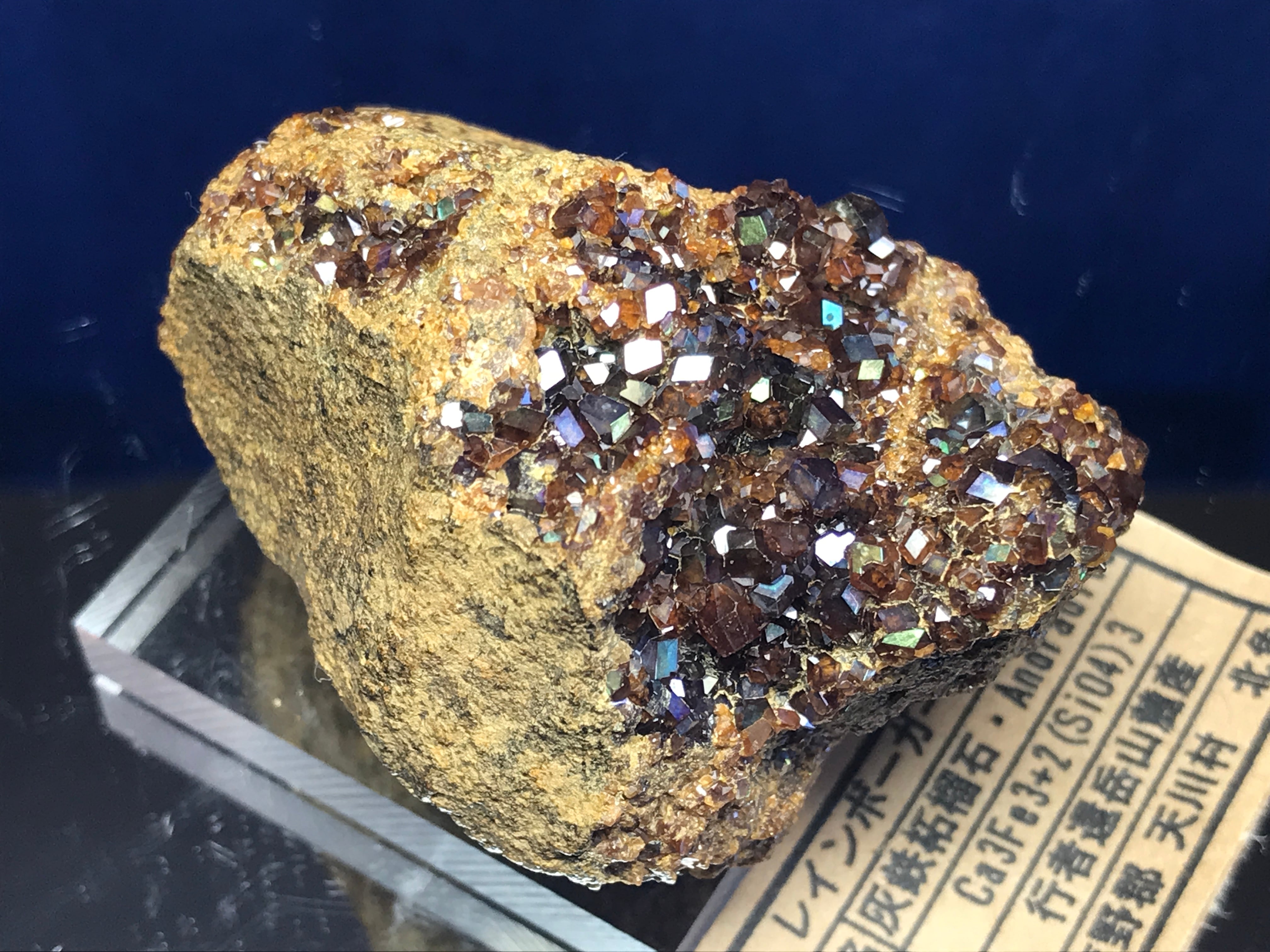 奈良県天川村行者還岳産のレインボーガーネットクラスターです。