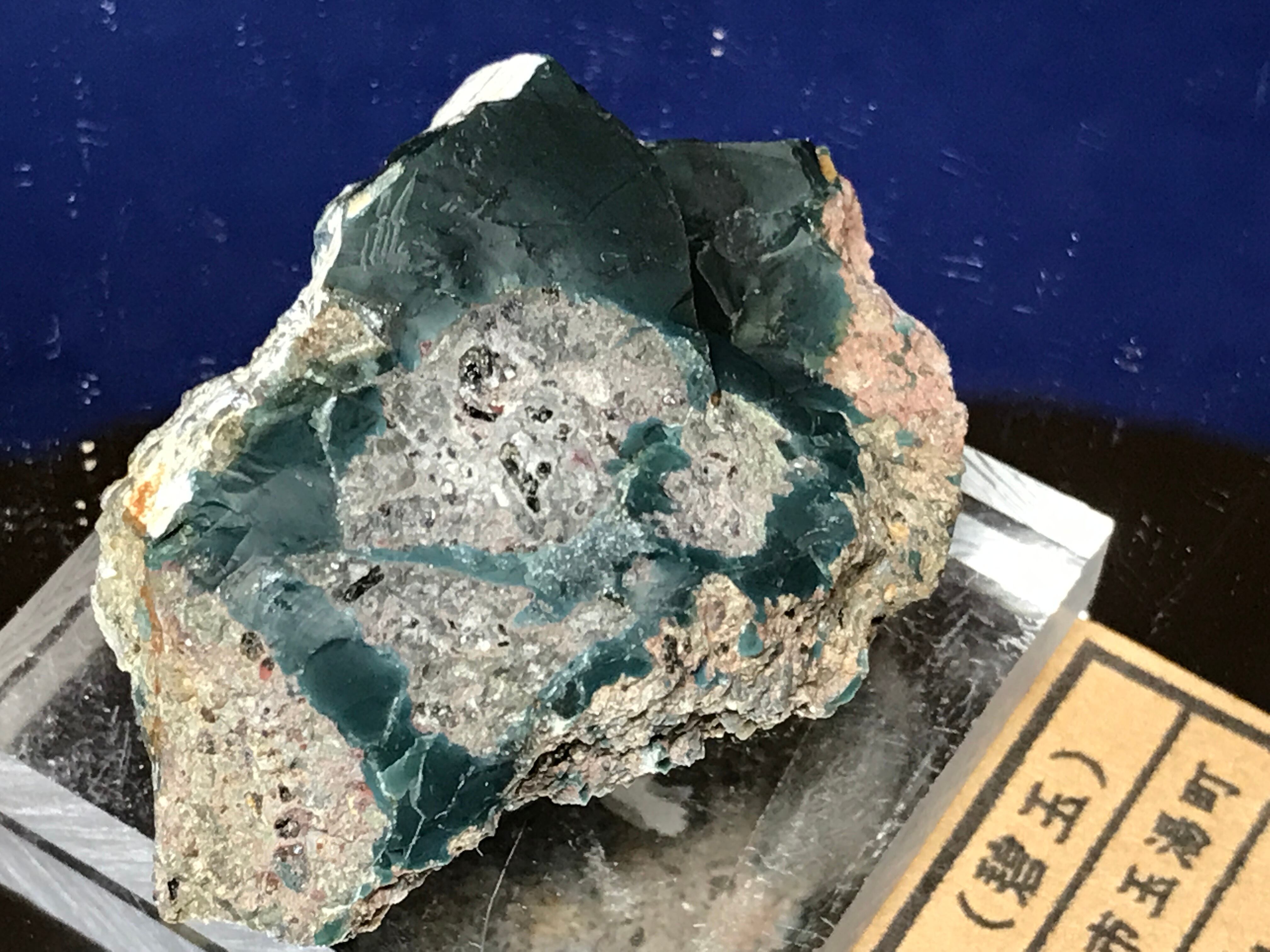 安山岩の母岩に縞状に碧玉が織りなす標本です。