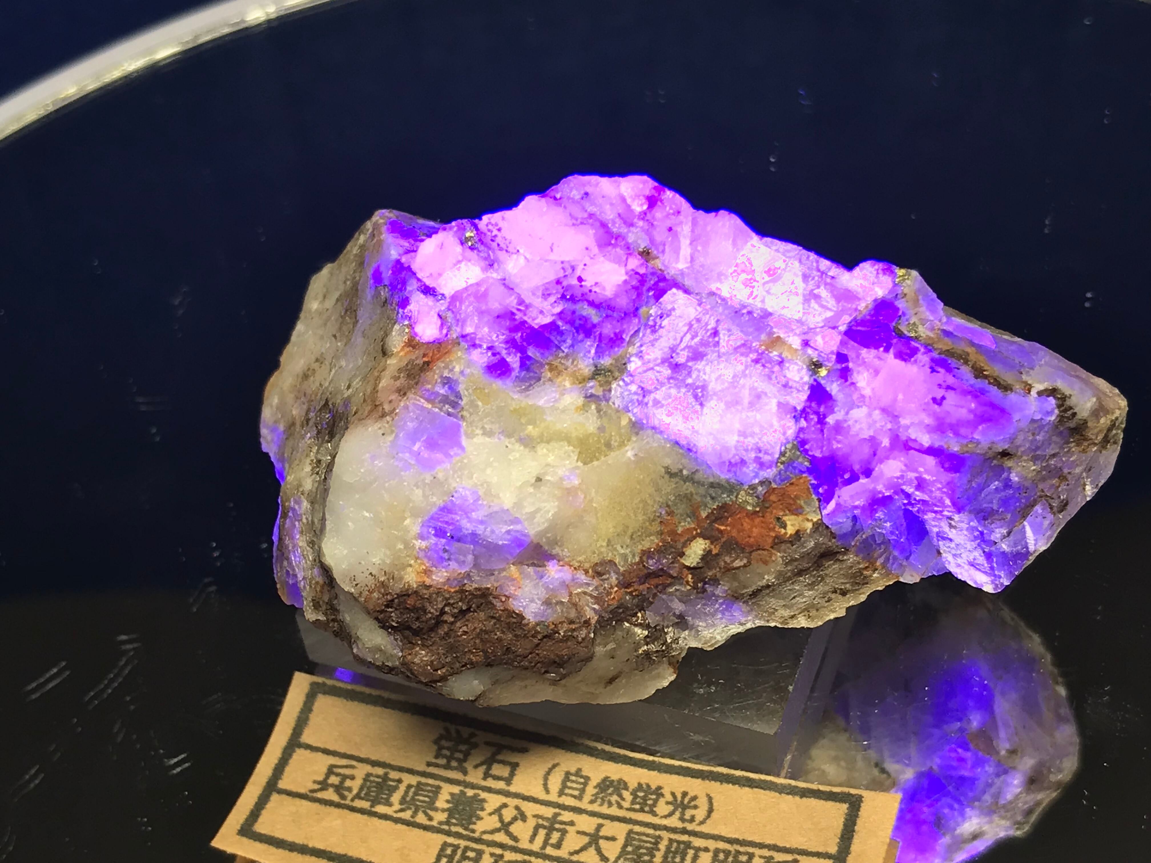 蛍光性が強く太陽光ですと、半日陰くらいで薄く紫色に蛍光します。